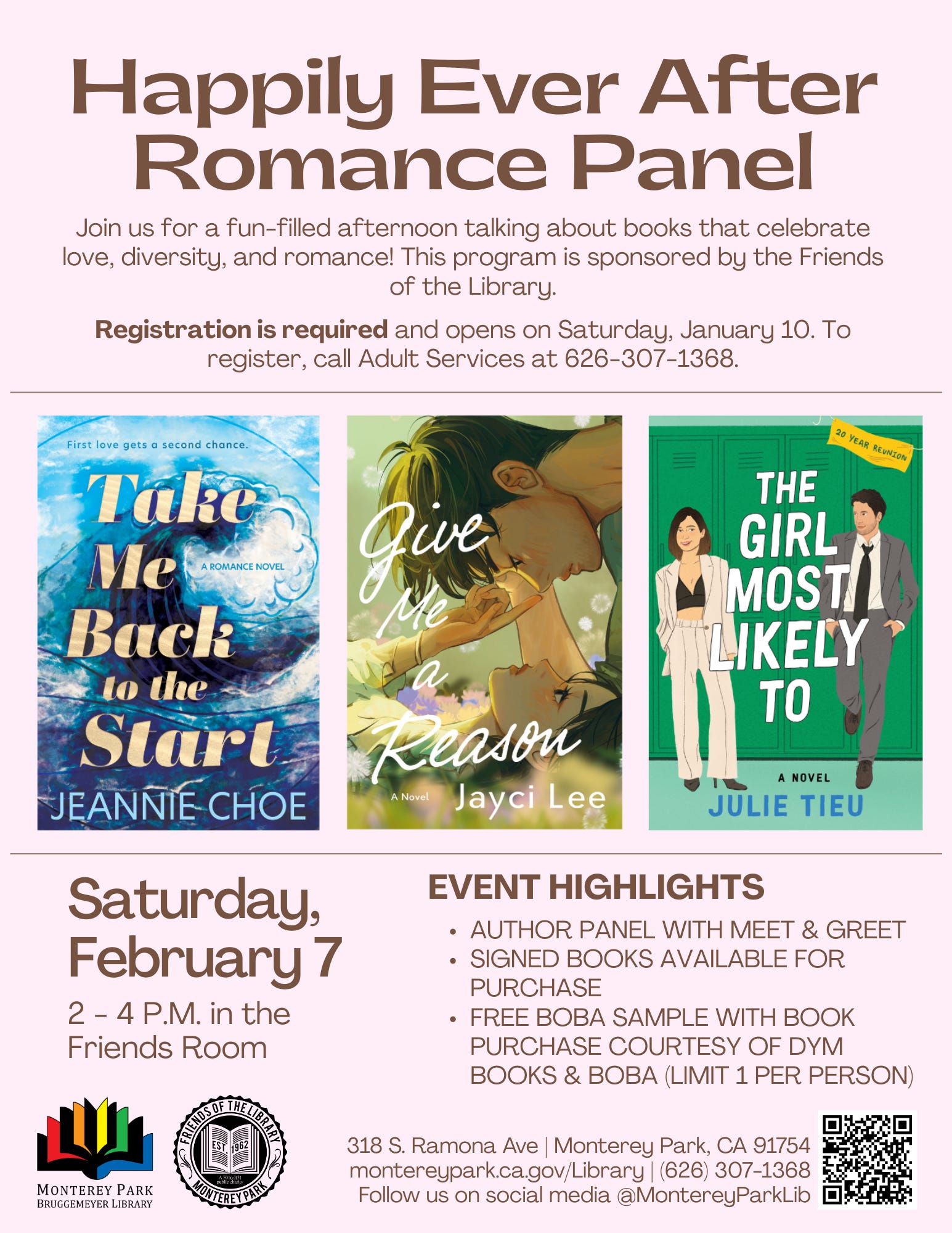I am so thrilled to be a part of the Happily Ever After Romance Panel for the Monterey Park Bruggemeyer Library. If you’ve been following me from the very, very beginning, then you may know that my very first author event was a remote panel with the Monterey Park Library. I had the audacity to pitch myself for this panel even before The Donut Trap was released.